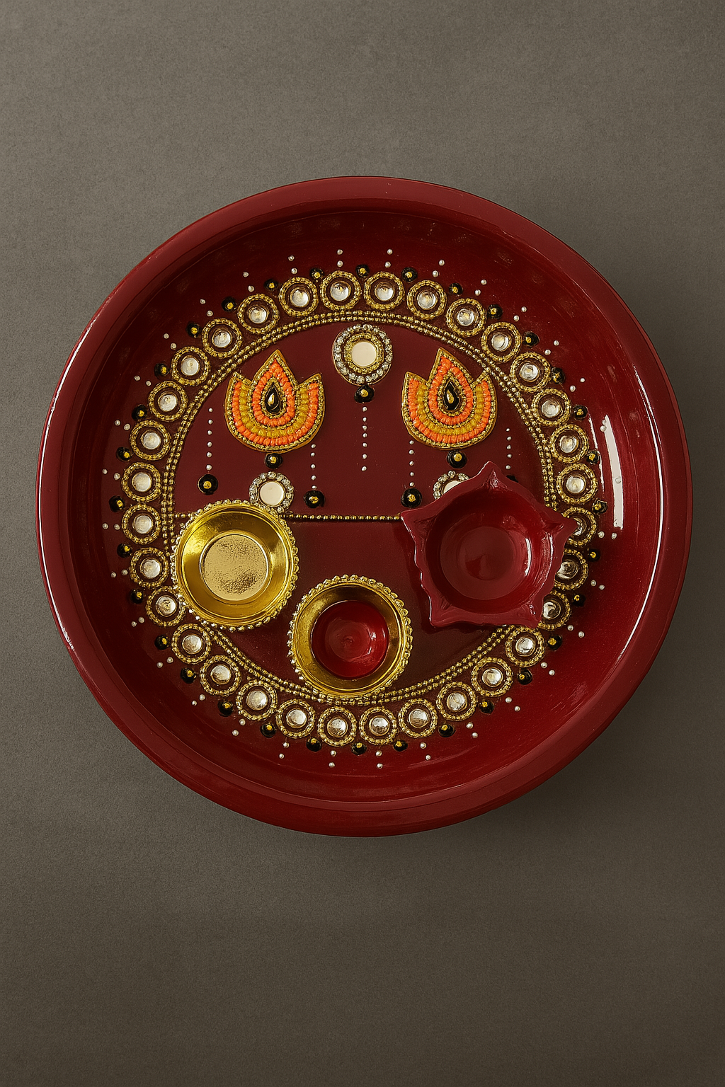 Decorative Gota Diya Holders with Pearl Base - Set of 6
