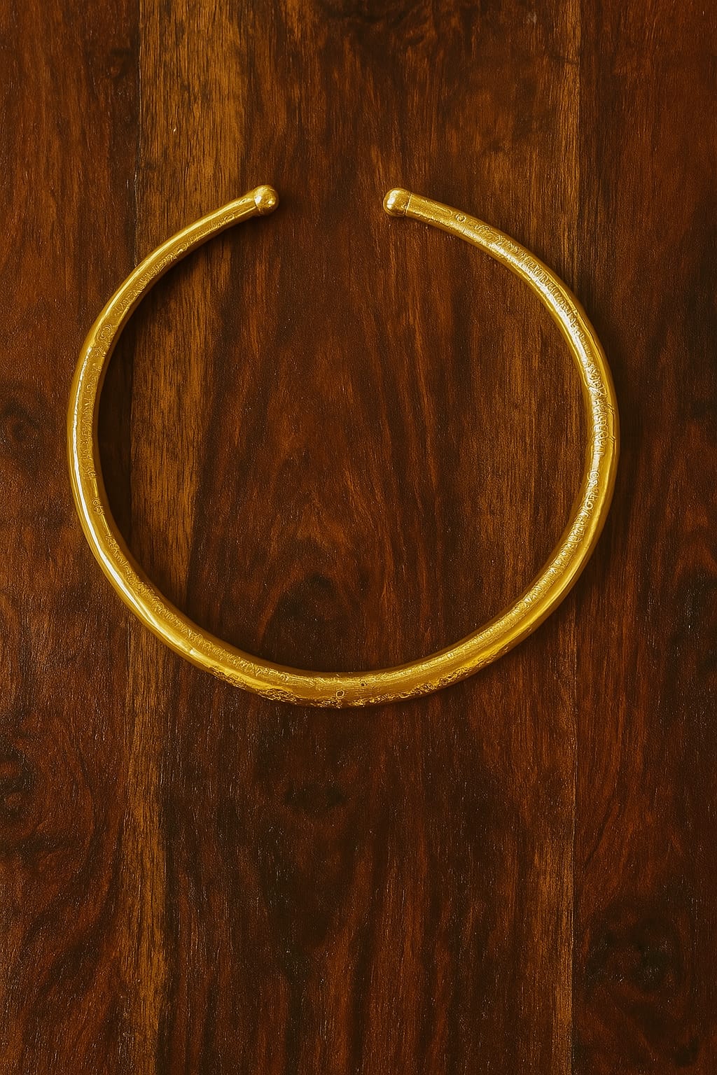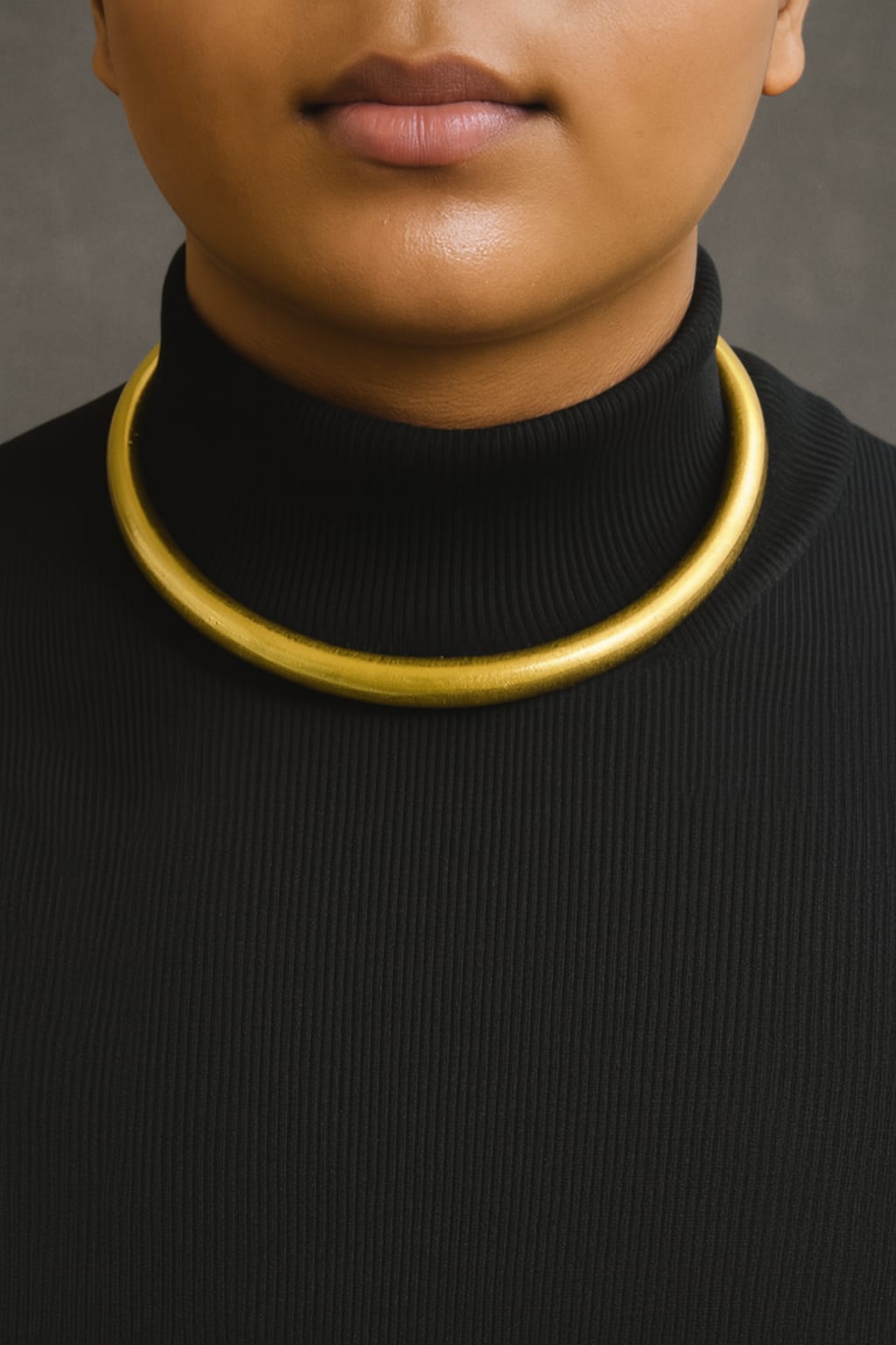 Timeless sophistication meets minimalist design in this elegant gold torque hasli. Featuring a smooth, rounded profile with ball-tip ends, this classic collar necklace showcases the beauty of simplicity. The rich gold finish and clean lines create a versatile statement piece that elevates any look with effortless grace.