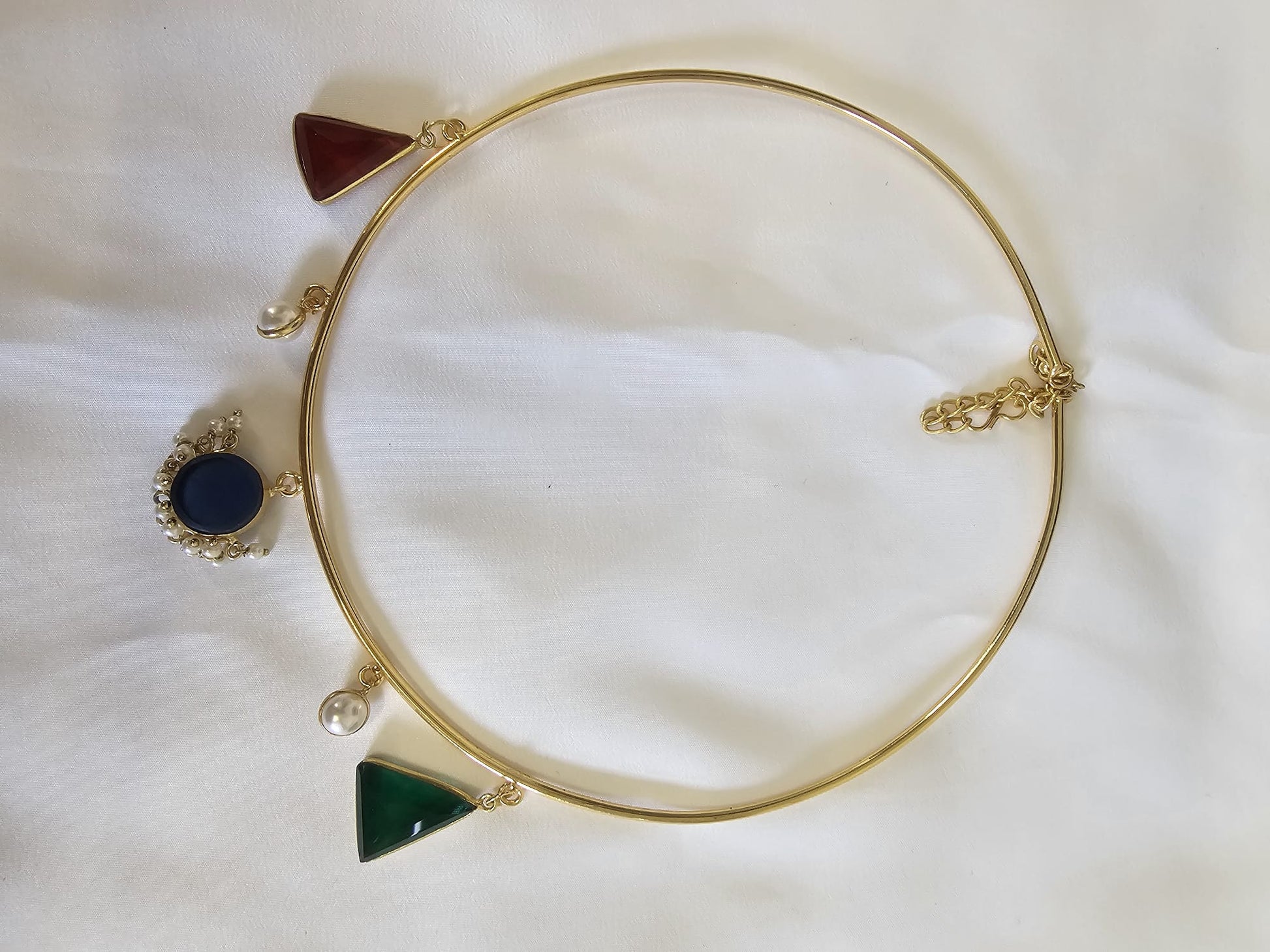 Authentic Indian Gold Hasli Necklace | Handcrafted Rajasthani Torque Choker with Pearl & Ruby Drops | Tarnish-Resistant Heritage Jewelry | UK Stock