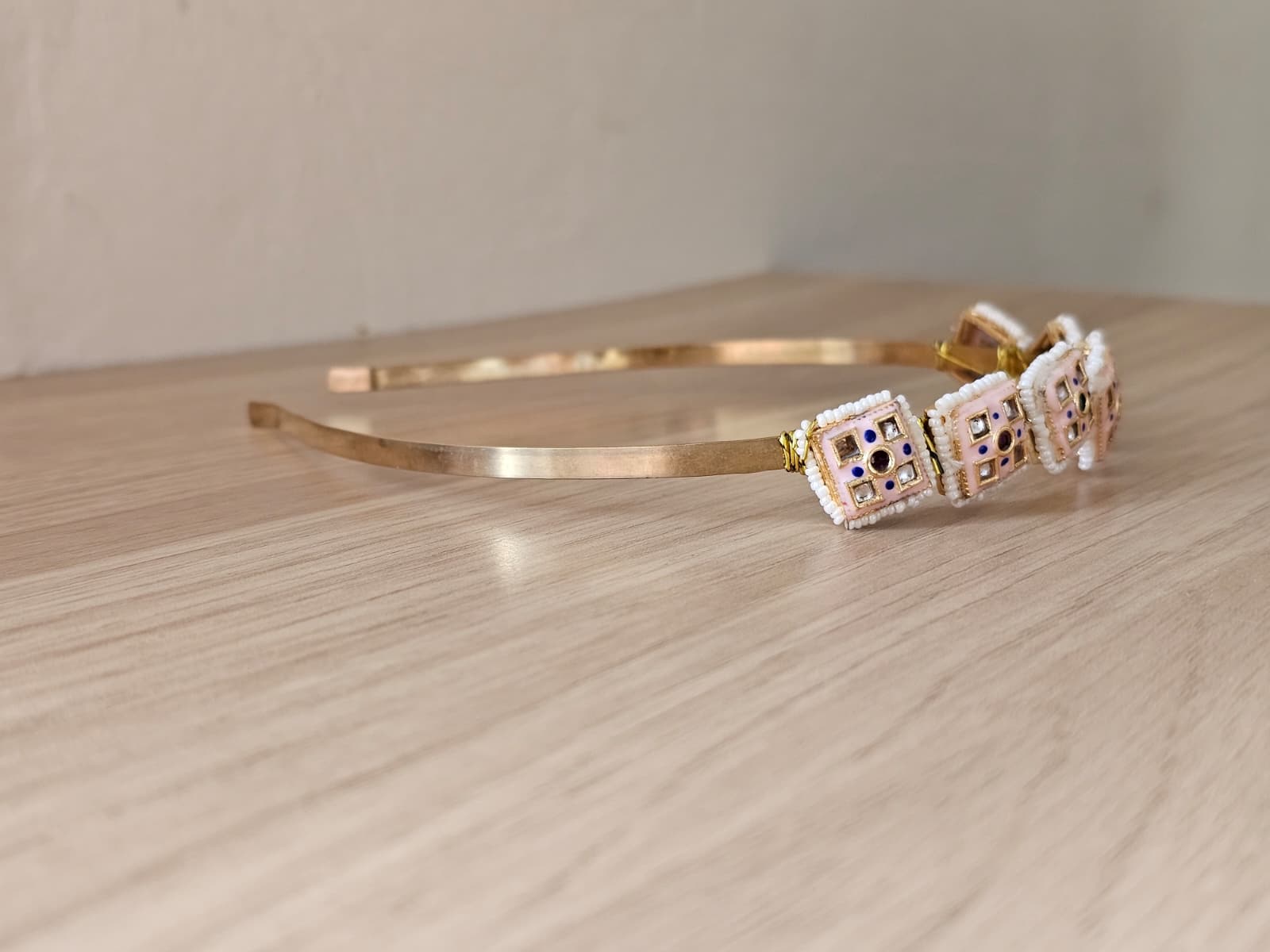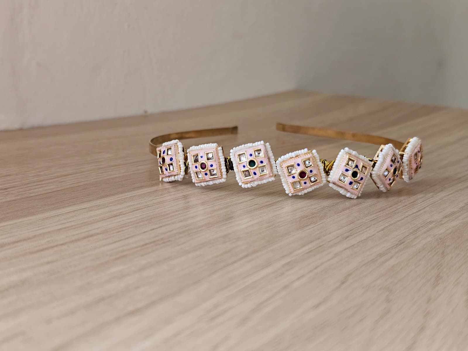 Celebrate nature-inspired elegance with the Simply Sajavat Floral Hairband. This exquisite piece features a series of intricate flower-shaped motifs, each meticulously hand-finished in our Manchester studio. Combining traditional Kundan-style artistry with a modern silhouette, this hairband is the perfect statement accessory for weddings, garden parties, or festive celebrations like Diwali.